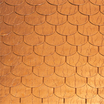 Медная поверхность «черепичек» надежно защищена специальным полиуретановым лаком, оберегающим металл от окисления. |