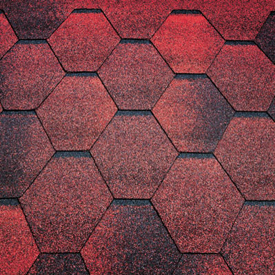 Лепестки   черепицы шестигранной формы, создают на крыше эффект настоящей мозаики,   играющей солнечными бликами и цветовыми оттенками. |
